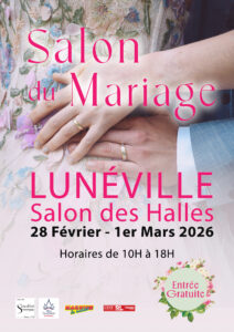 Nous serions ravis de vous rencontrer au Salon du Mariage de Lunéville, où nous serons présents les 28 février et 1er mars 2026, à la Salle des Halles, de 10h00 à 18h00. L’entrée est gratuite. Au plaisir d’échanger avec vous lors de cet événement. Belle journée à vous.